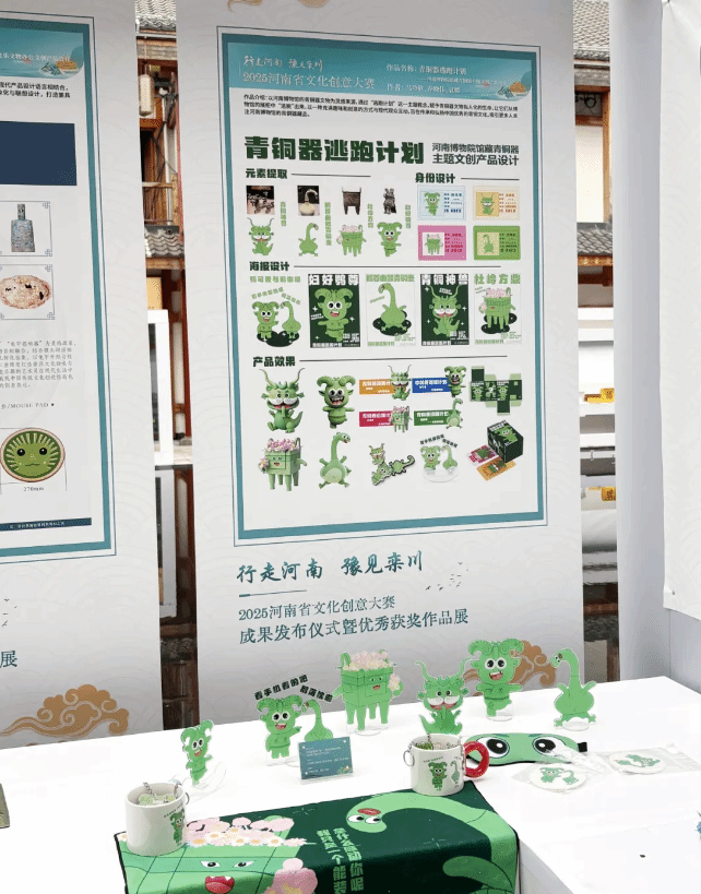 本次展览集中展示了2025河南省文化创意大赛(社会群体)的获奖作品。大赛由河南省文化和旅游厅、中共河南省委宣传部、中共河南省委网络安全和信息化委员会办公室、河南省教育厅联合主办。在此次比赛中,我院学子表现突出,共荣获铜奖3项、优秀奖7项。其中,铜奖奖金每项5000元,我院获奖奖金累计达15000元,体现了学生创作成果的专业水准与市场认可。
