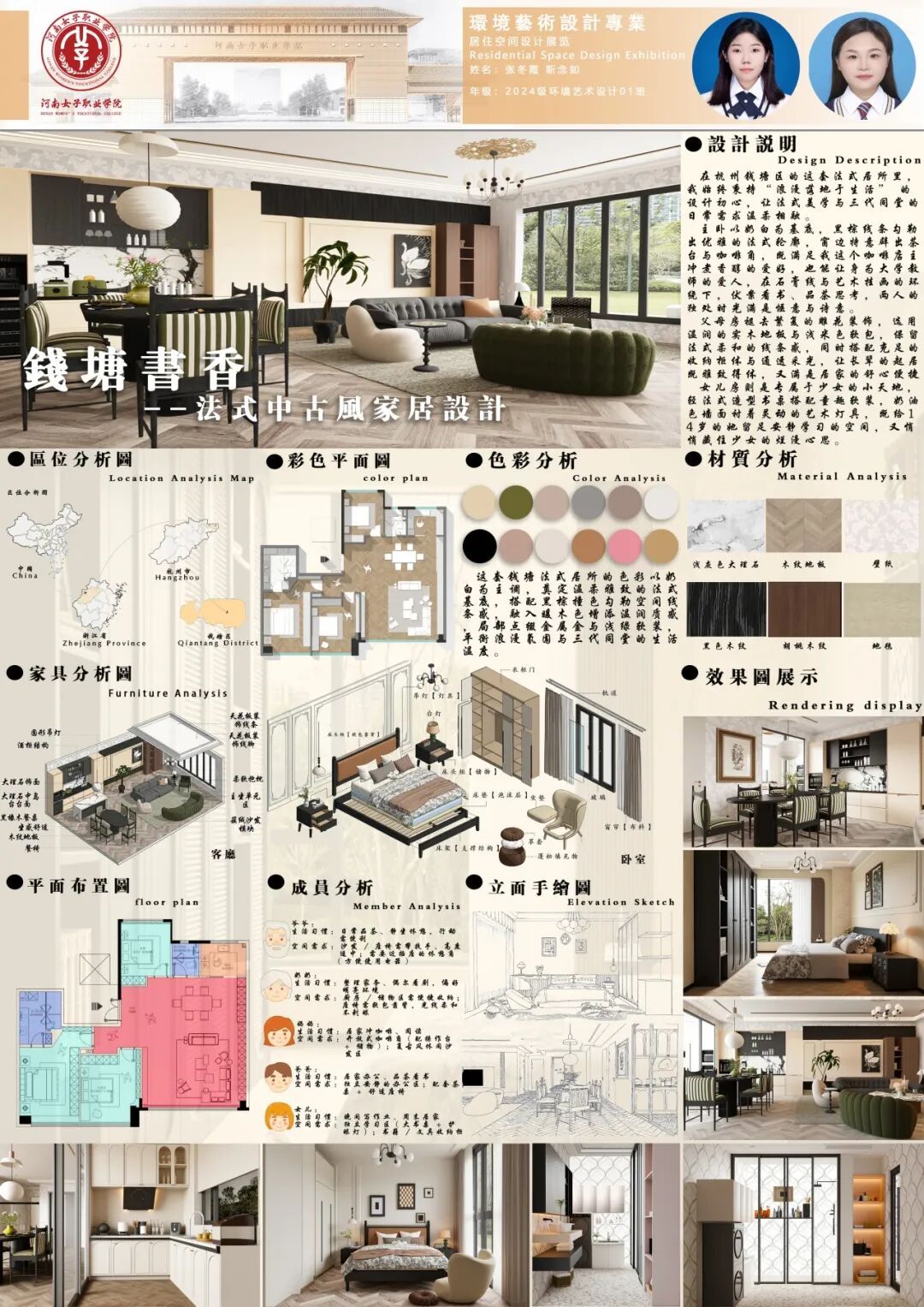 12月22日—12月26日,美术与设计学院“居住空间设计”课程作品展在北校区行政楼一楼举行,本次展览以“设计·生活”为主题,共展出2024级学生34件空间设计作品,集中呈现24级环境艺术设计专业学生的设计学习成果。